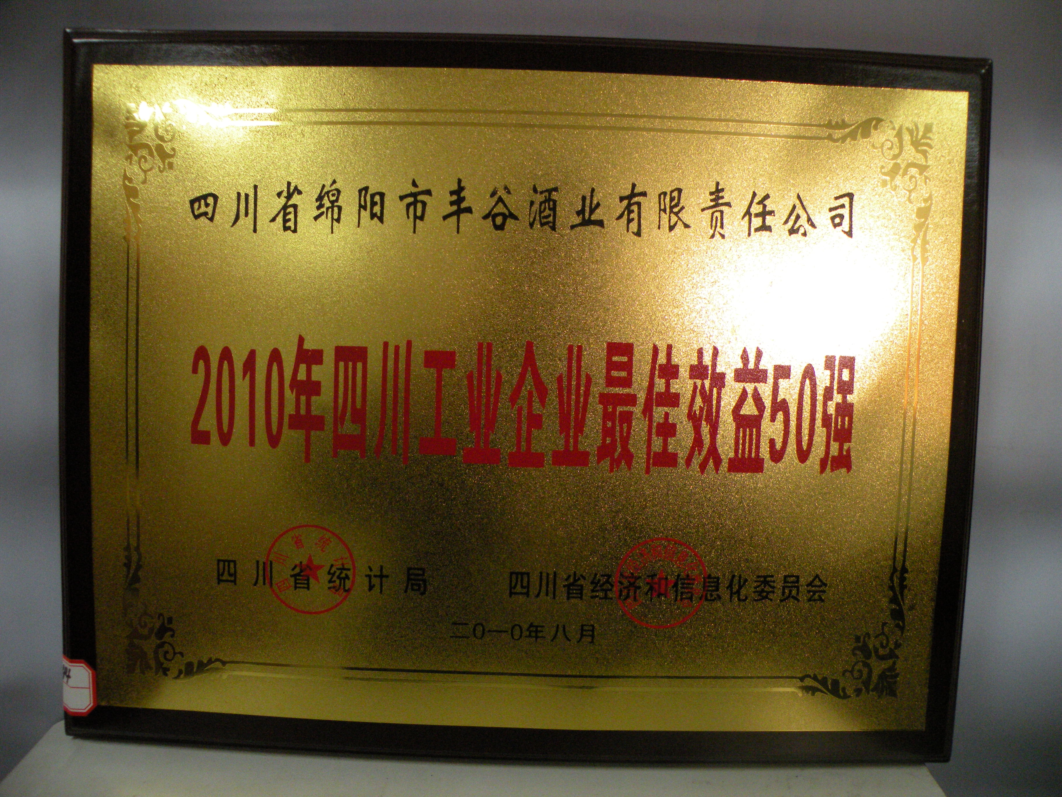 榮獲2010年四川工業(yè)企業(yè)最佳效益50強稱號